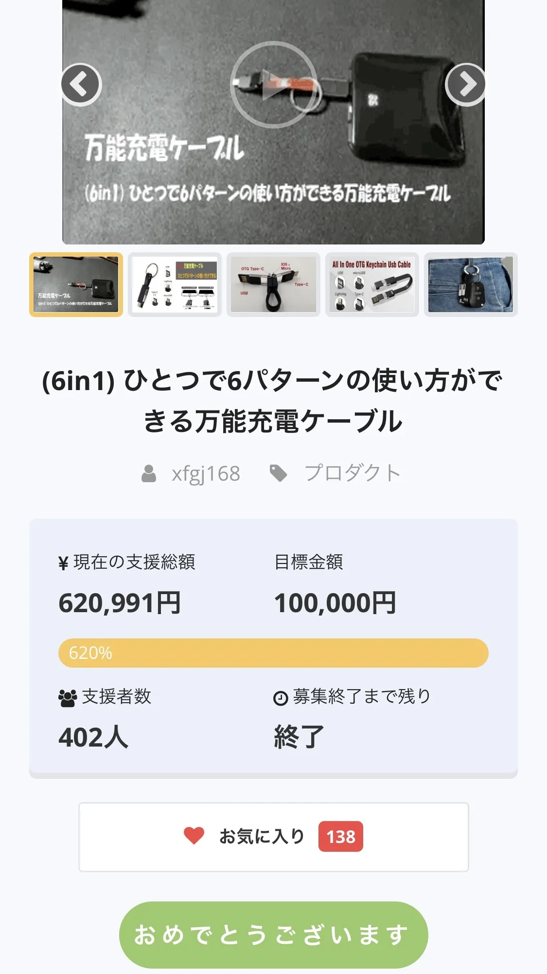 このプロジェクトは、2020/02/21に募集を開始し、 402人の支援により 620,991円の資金を集め、 2020/04/20に募集を終了しました