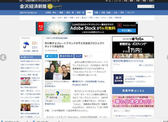 【love lotus】のチョコレートプロジェクトを金沢経済新聞さんにご紹介頂きました。