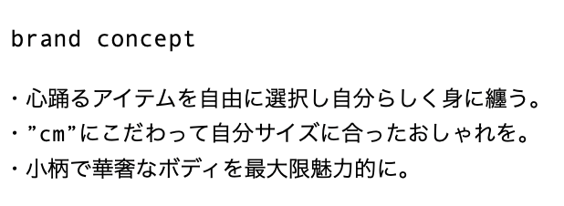 私たちは背のちっちゃい女性達に「ファッションで得られる高揚感と特別な時間」をお届けしたくこのプロジェクトを立ち上げました。