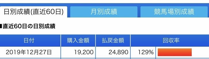 2019年12月27日は5.690円のプラス収支で回収率が129%でした。