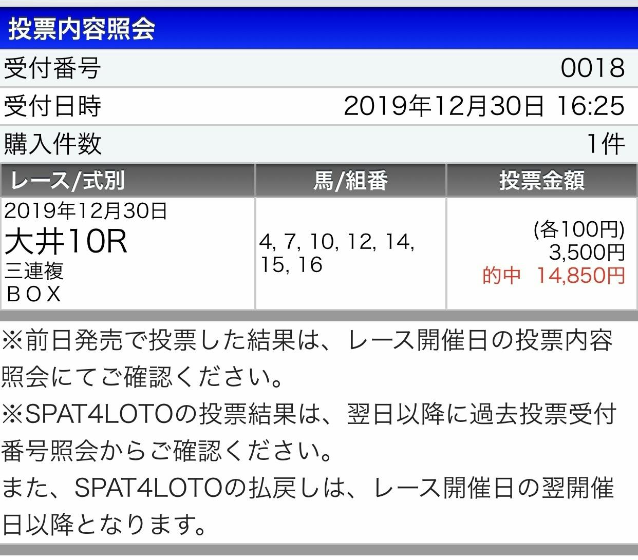 さて、昨年の12月30日分の的中報告となります。これは自慢では無く、買い方を見てほしいのです。的中=正解です。