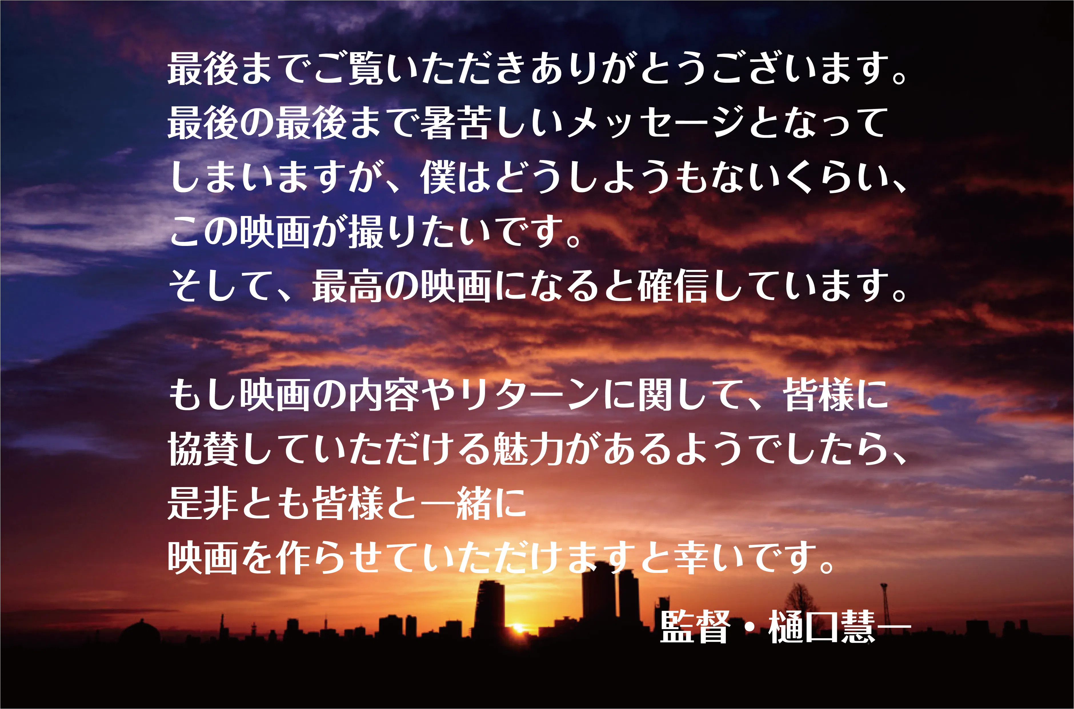 ★監督より心からのお礼のメッセージをメールにてお送りします。