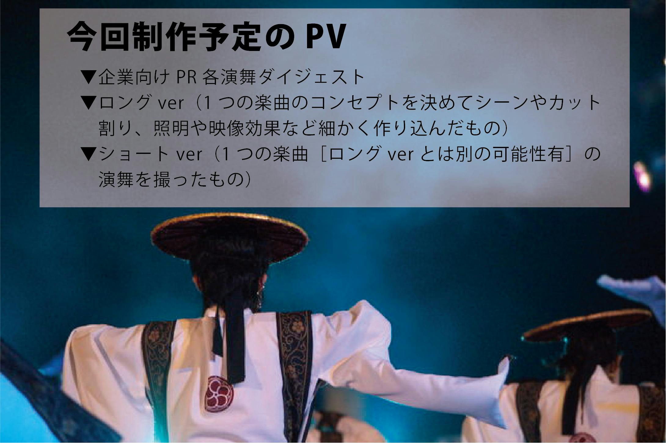 そしてSNS上でも、動画サイトで通常の演舞の動画は見れるけれど、それよりもきちんと撮影したかっこいいPVをぜひ見たい!という言葉を頂いております。