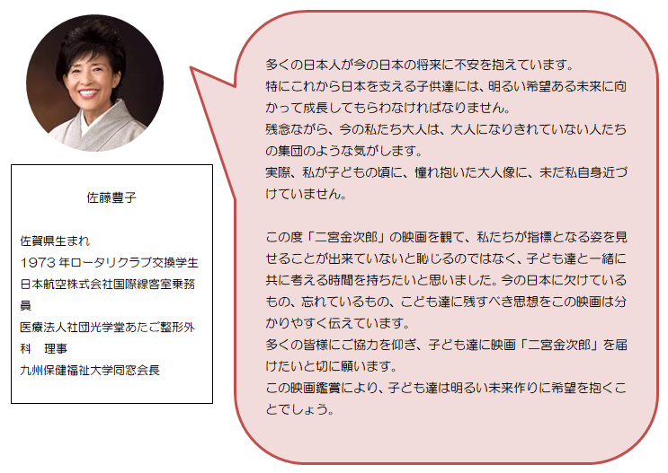 はじめまして。映画『二宮金次郎』延岡上映会実行委員会実行委員長の新川菜生です。