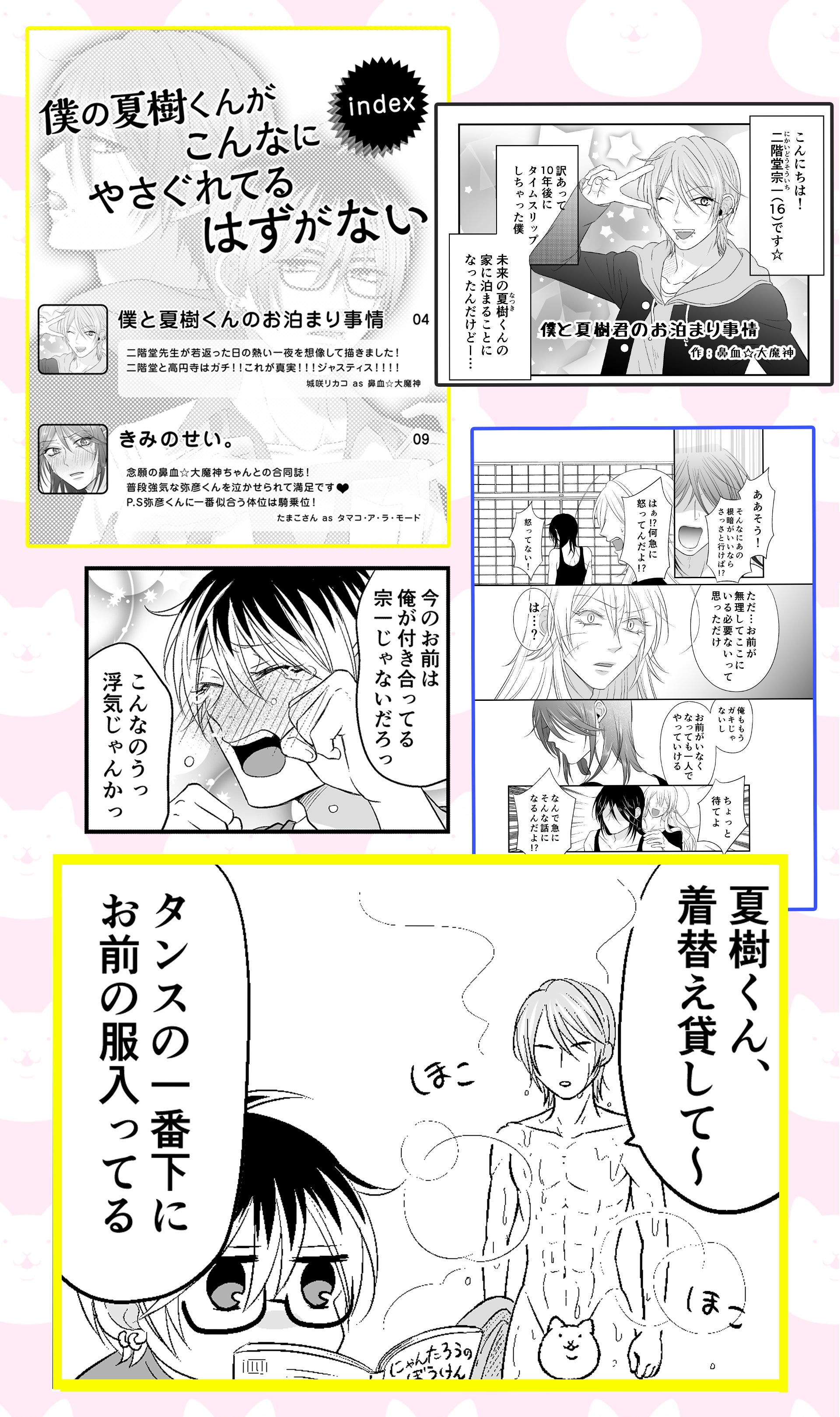 ・復刻・公式同人誌(一部描き直し)→リカコ作!二×高同人誌です。本編58話~60話の高校生二階堂×高円寺を見たリカコが妄想を爆発させて描いたとか……?! たまこさん作によるユキツネ×弥彦編も同時収録! ここでしか読めない鼻血必至のファン必見な内容となっております。