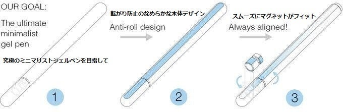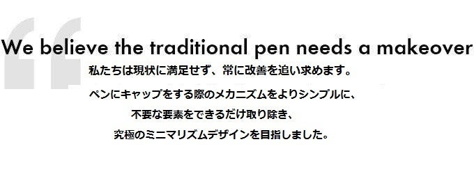 ペンは両端がマグネット式になっており、本体表面は面をなくすことで、なめらかにキャップがマグネット装着するようになっています。