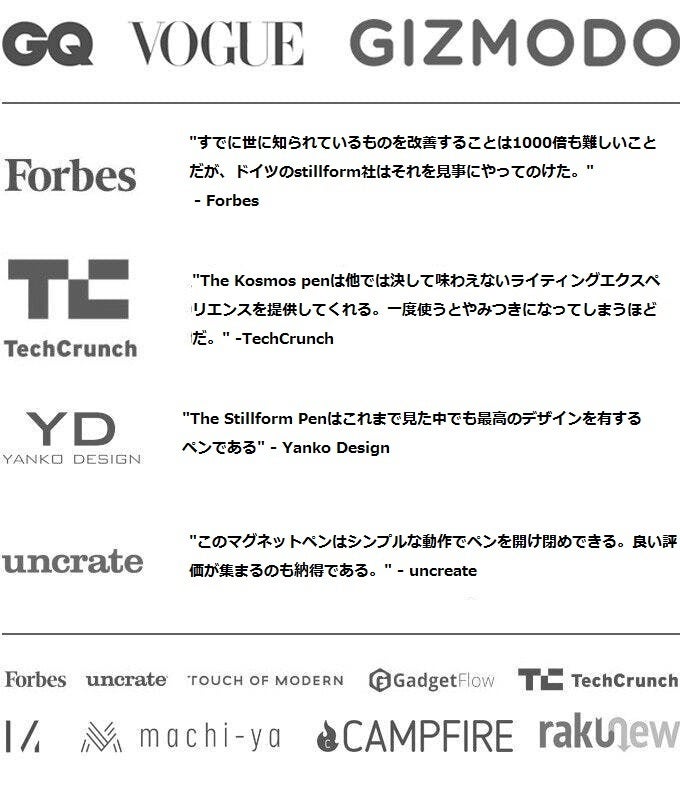 キャンペーンをご支援いただき、製品がお手元に届きましたら、是非コメント欄にご感想をお寄せください。また、以下バナーよりFacebook、email(info@stilform.com)でもご感想をお待ちしております。私たちのストアページ(https://www.stilform.com)、instagramページも是非ご覧ください。