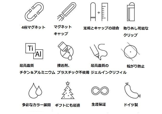 ぴたっとスムーズにくっついてくれるペン先のマグネットには4極ネオジムマグネットを採用。機能性はアップしながらもデザインはシンプルでスタイリッシュなまま、キャップをスライドさせるだけでなめらかにペンを走らせることができます。