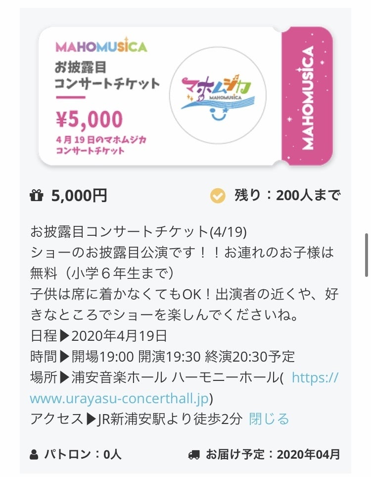 おかげさまで目標達成に向けて、現時点で30%を超えるご支援を頂くことができ、80人を超えるパトロンの方にご協力をいただいています!!本当にありがとうございます!!(T_T)まだ目標までには長い道のりになりそうですが、この思いがより沢山の方に広まるように頑張りたいと思っています。どうやったらこの想いがいろーーーんな人に届くだろう。。。と考えまして、チラシを作成することにしました♫このプロジェクトのトップページのイラストをデザインしてくださってる方に作っていただいてるのですが、とても素敵なデザインができました♫もう少しで出来上がる予定です!!そこで・・・『わたしの職場で配れるよー!!』『わたしの参加するコンサートで配れるよー!!』『子供の通ってる保育園、幼稚園、小学校に置いてもらえるよー!!』『配るの協力するよー!!』なんて方がいらっしゃいましたら、ぜひぜひメッセージを下さい!!!協力してくださると嬉しいです!!ご連絡をお待ちしております*\(^o^)/*ご協力してくださる方がいらっしゃいましたら、お礼のメッセージと一緒にご郵送させていただきます!全国の方々にこの思いが届きますように!!!!明日は台本打ち合わせのマホムジ会議です♫どんなショーになるでしょうか。乞うご期待!!!プロジェクト終了まであと47日!!!!