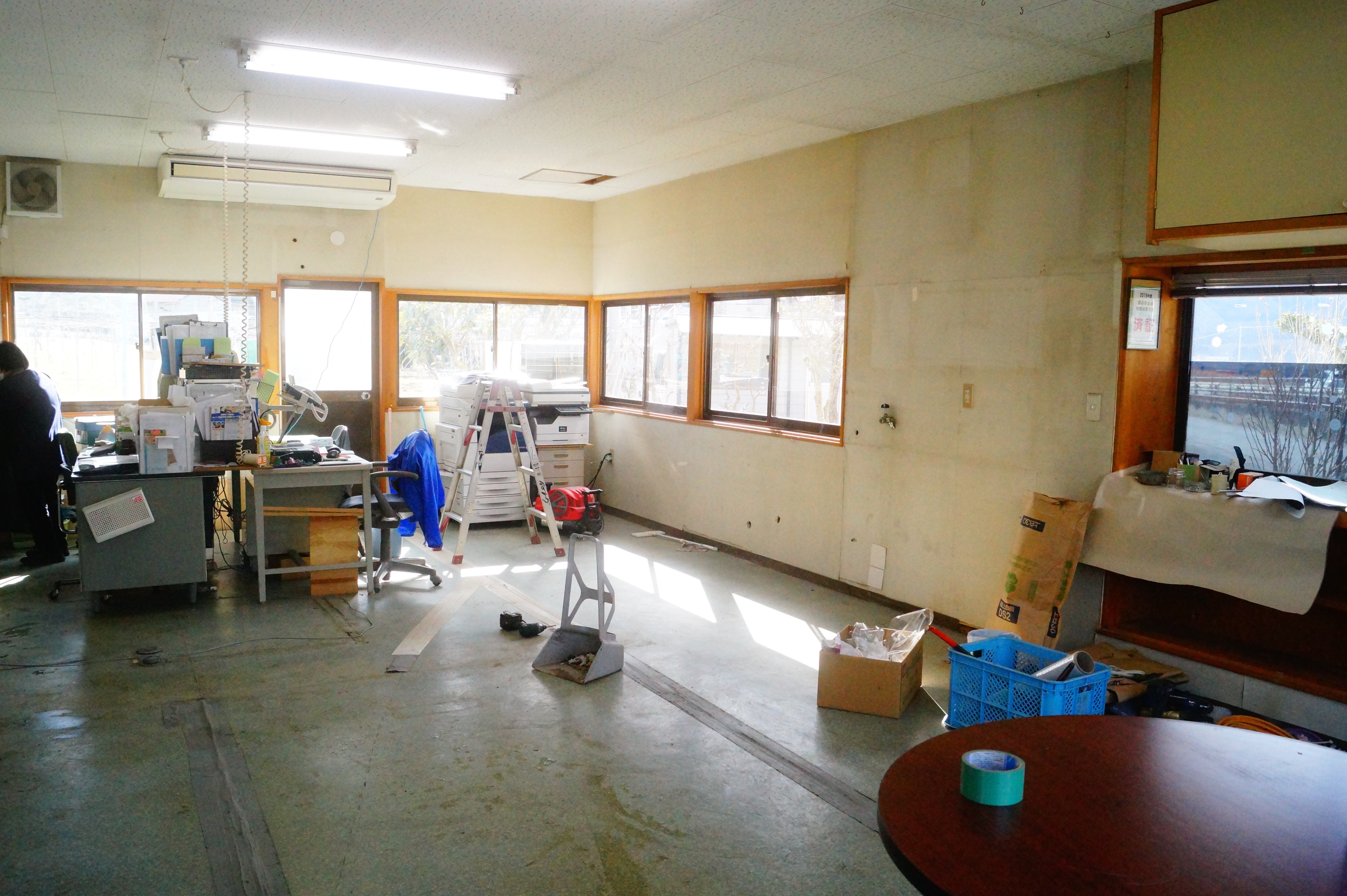 工事を前に事務所の引越しが完了しました。すぐ隣にプレハブを設置し工事終了までの間そこで事務作業やお買い物のお客様の対応をさせていただきます。ご不便をおかけしますが完成を楽しみに少しだけ手狭な直売所で接客させていただきます。さぁ、残るところあと8日。まだまだラストスパートがんばってまいります!是非皆様のご支援よろしくお願いいたします。