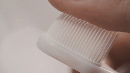私たちの歯茎の健康のための歯ブラシを探し続けてようやく辿り着いのが「シリコン」です。 歯科医療用としてもよく使われるシリコンは口腔に与える刺激を最小限まで抑える魅力的な素材でした。タングクリーナーにもよく使われているシリコンは口腔管理にもっとも適した材質でした。
