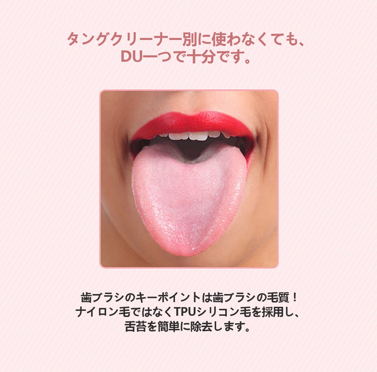 舌の健康のためにタングクリーナーを使ったほうがいいってことはもうみなさんご存知ですよね?しかし、歯磨き後、別途にタングクリーナーを使うのは少し面倒臭い、、、。そんな忙しい皆さんに歯磨きしながら舌の舌苔まで効果的に除去できるDUシリコン歯ブラシをお勧めします。