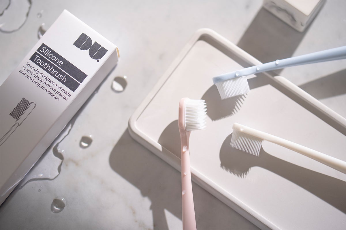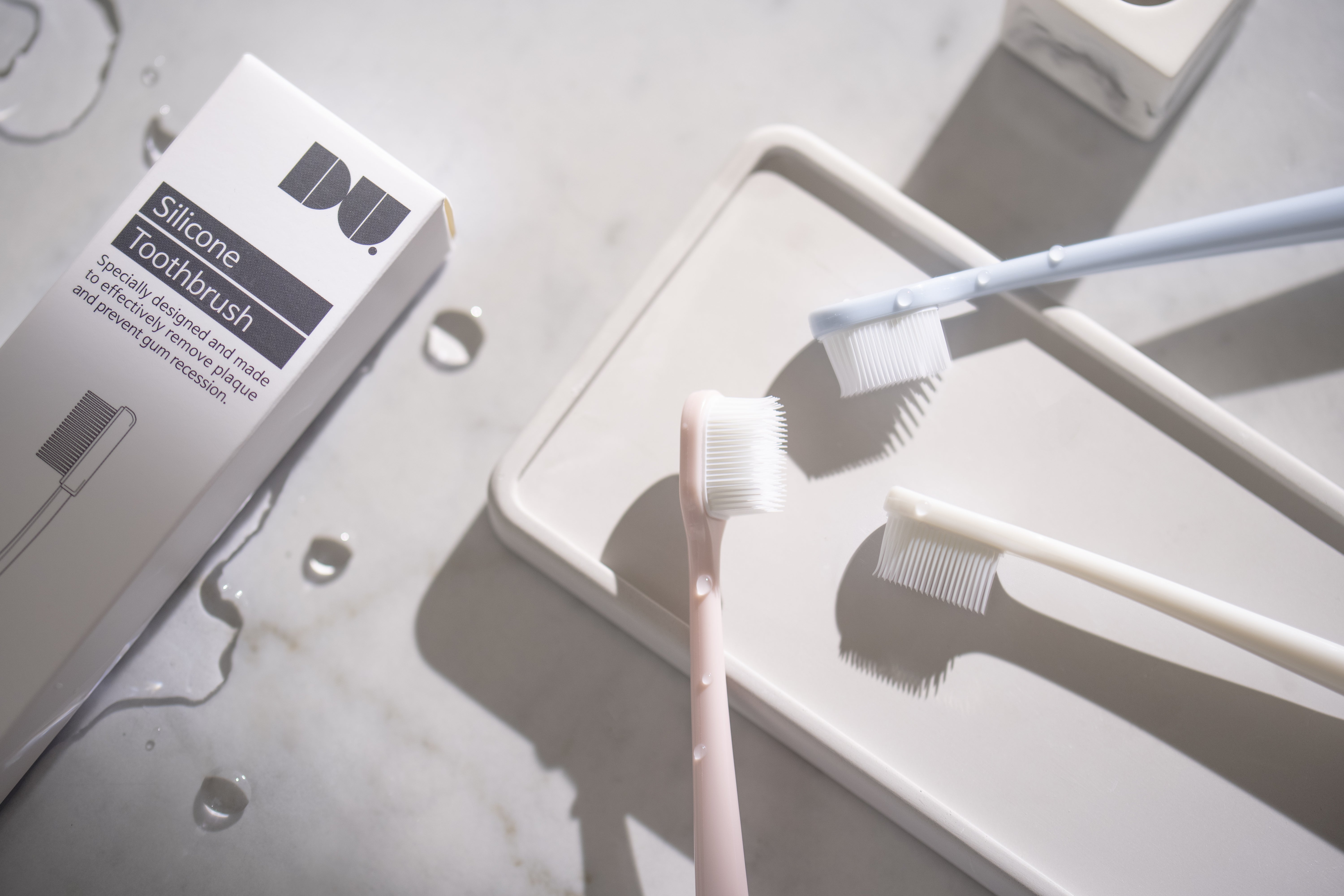 それでローンチしたDUシリコン歯ブラシは、従来のナイロン毛の歯ブラシとは違って、抗菌力に優れ、歯茎に負担を与えることなく、歯茎と歯を同時に磨くのに適した歯ブラシです。 また、歯と同じくらい舌の健康が重要視されている今、舌の舌苔除去にも効果的であり、別途タングクリーナーを使わなくても歯と舌のケアをしっかりできる新発想の歯ブラシです。