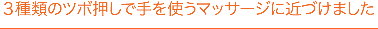 指先でツボをしっかり押す、指の腹で押さえる、手のひらで広く押さえる3種類の刺激をデザインしています。用途に合わせて刺激を使い分けることができます。
