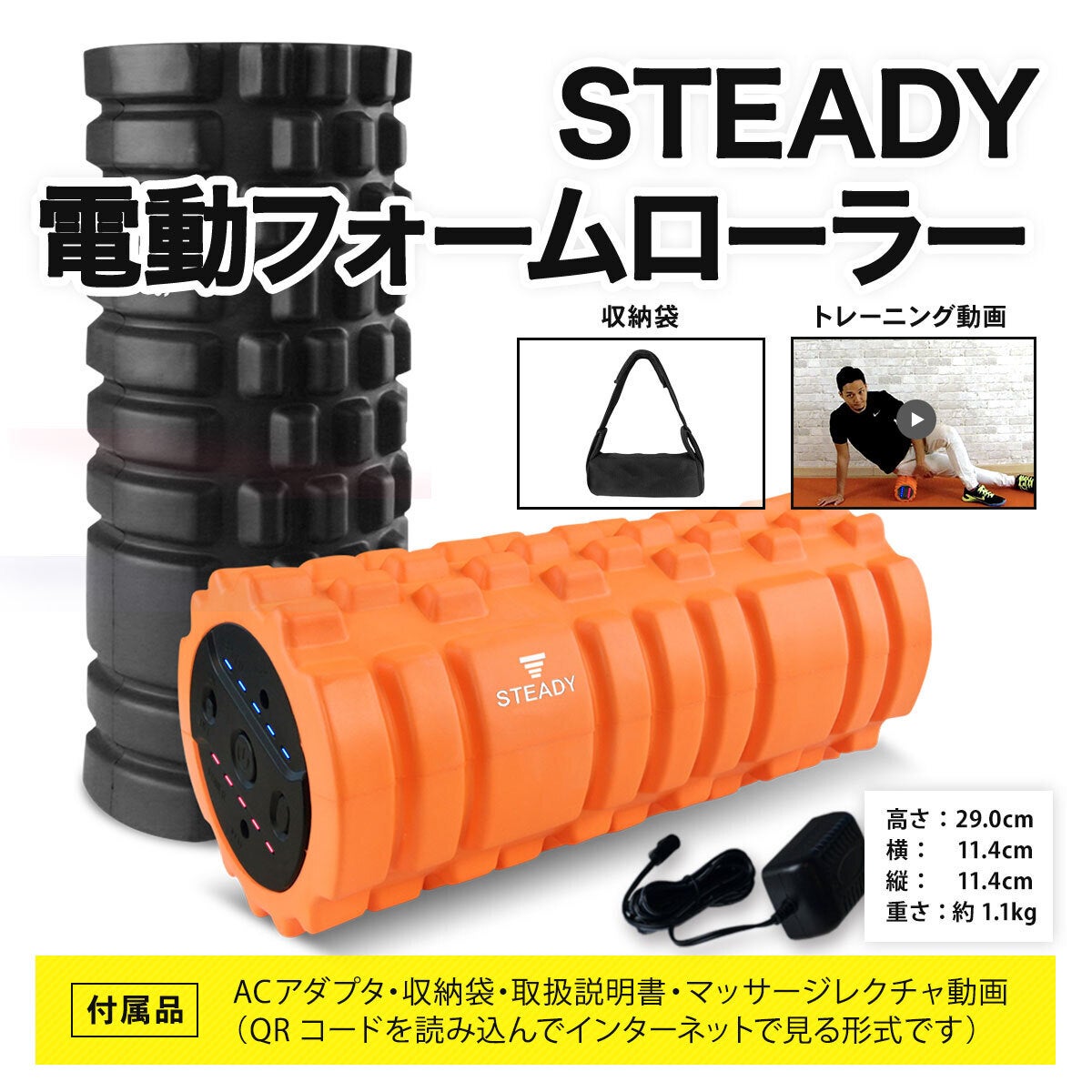 ※真ん中のオレンジ色の製品がSTEADYの電動フォームローラー です。