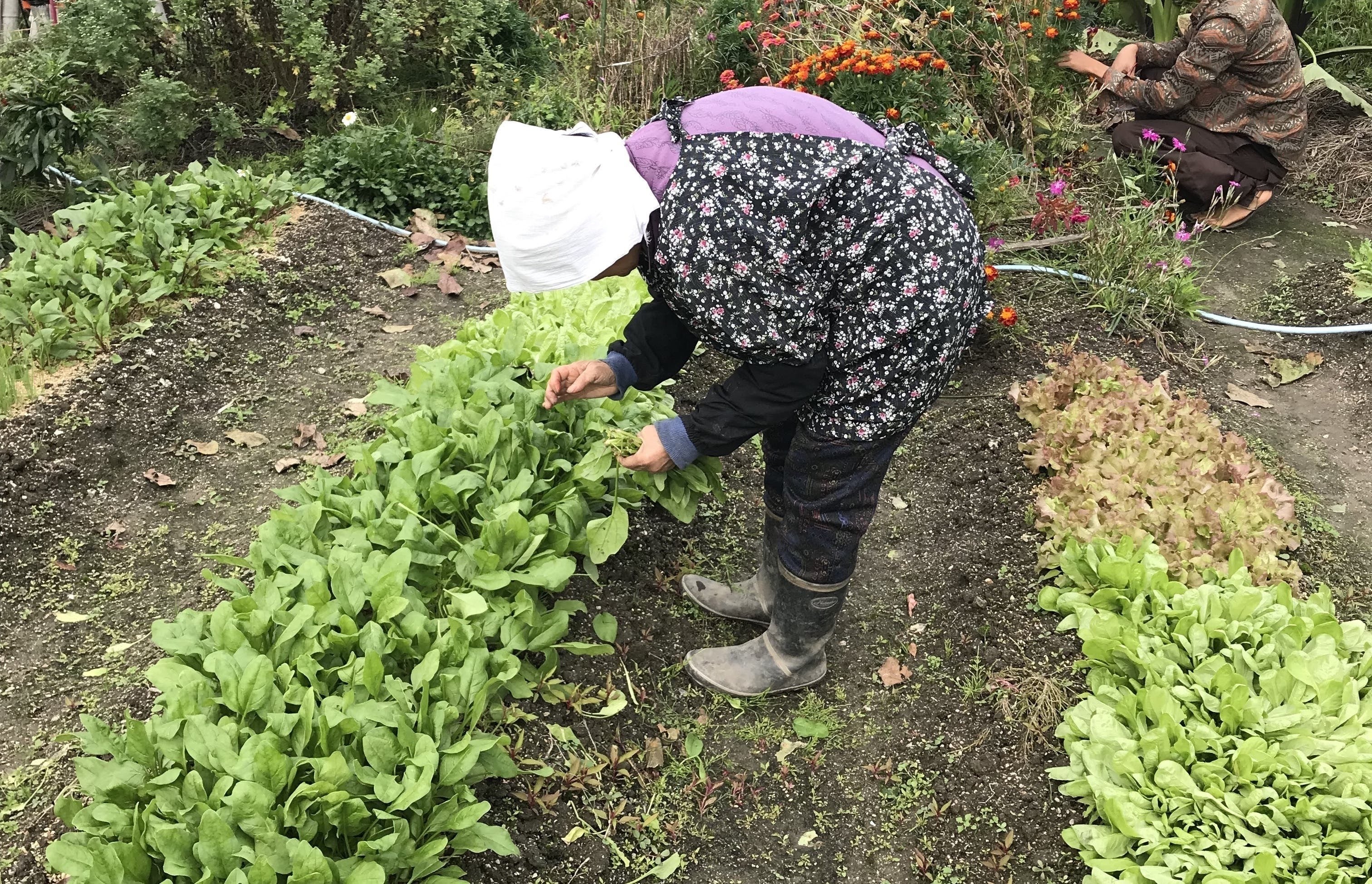 おばあさんの畑で一緒に農作業をしていると、話題は自然とおばあさんの息子さんの話に。