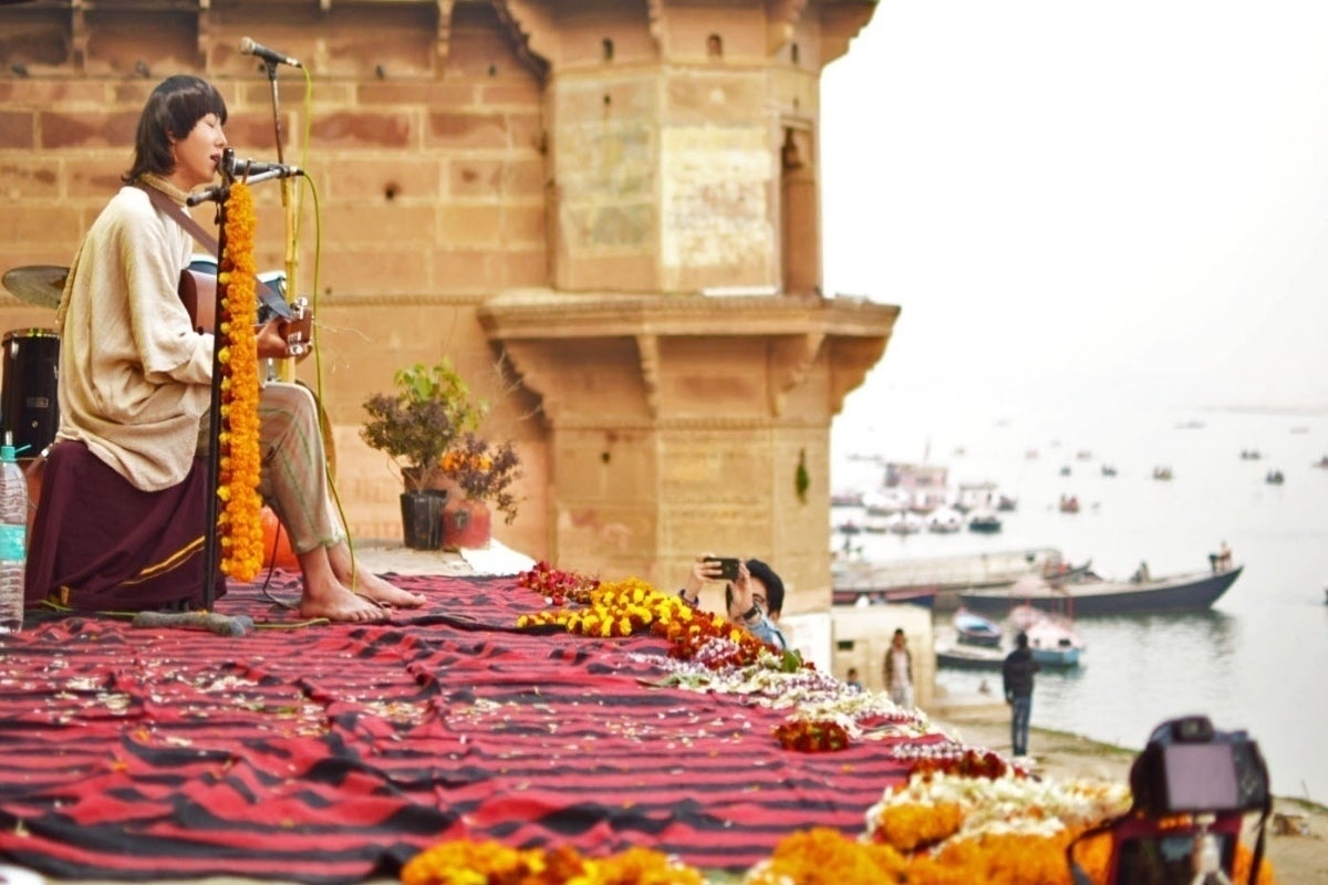 聖なるガンジス川の流れる沐浴場にあるお寺をステージにして行われるLIVEはとても幻想的で素晴らしい物になります。