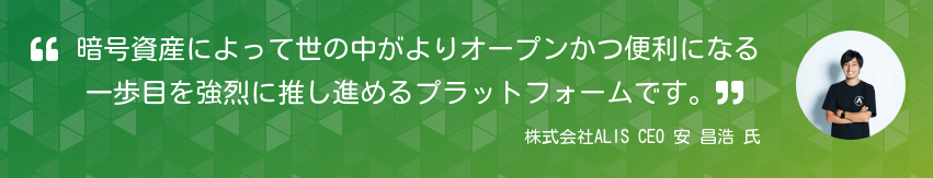 暗号資産によって世の中がよりオープンかつ便利になる一歩目を強烈に推し進めるプラットフォームです。