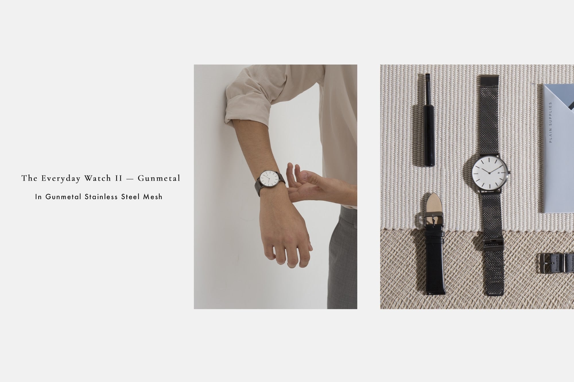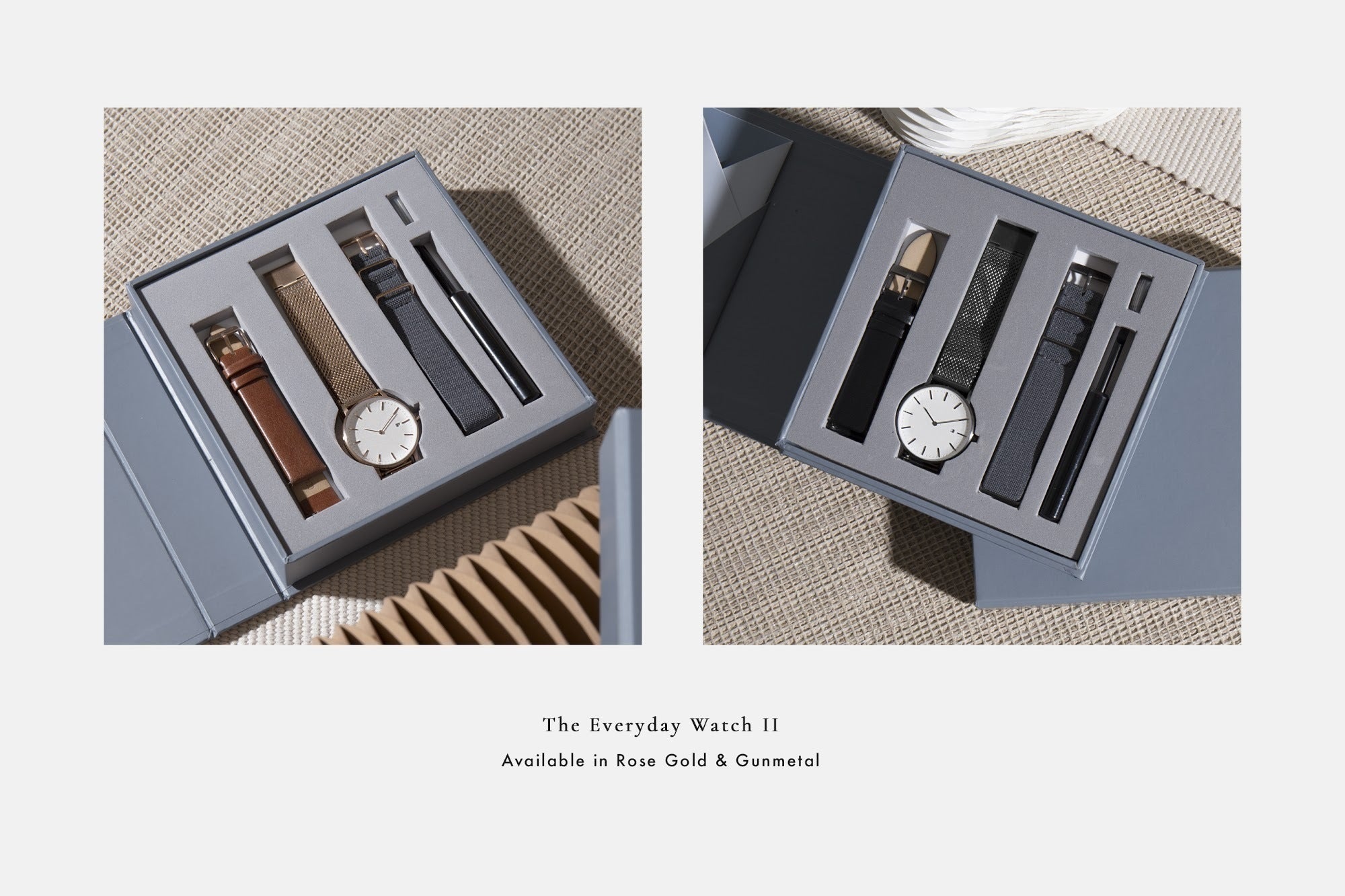 The Everyday Watch IIのメインコンセプトは汎用性です。3種類のストラップを自由に選んで装着いただけます。