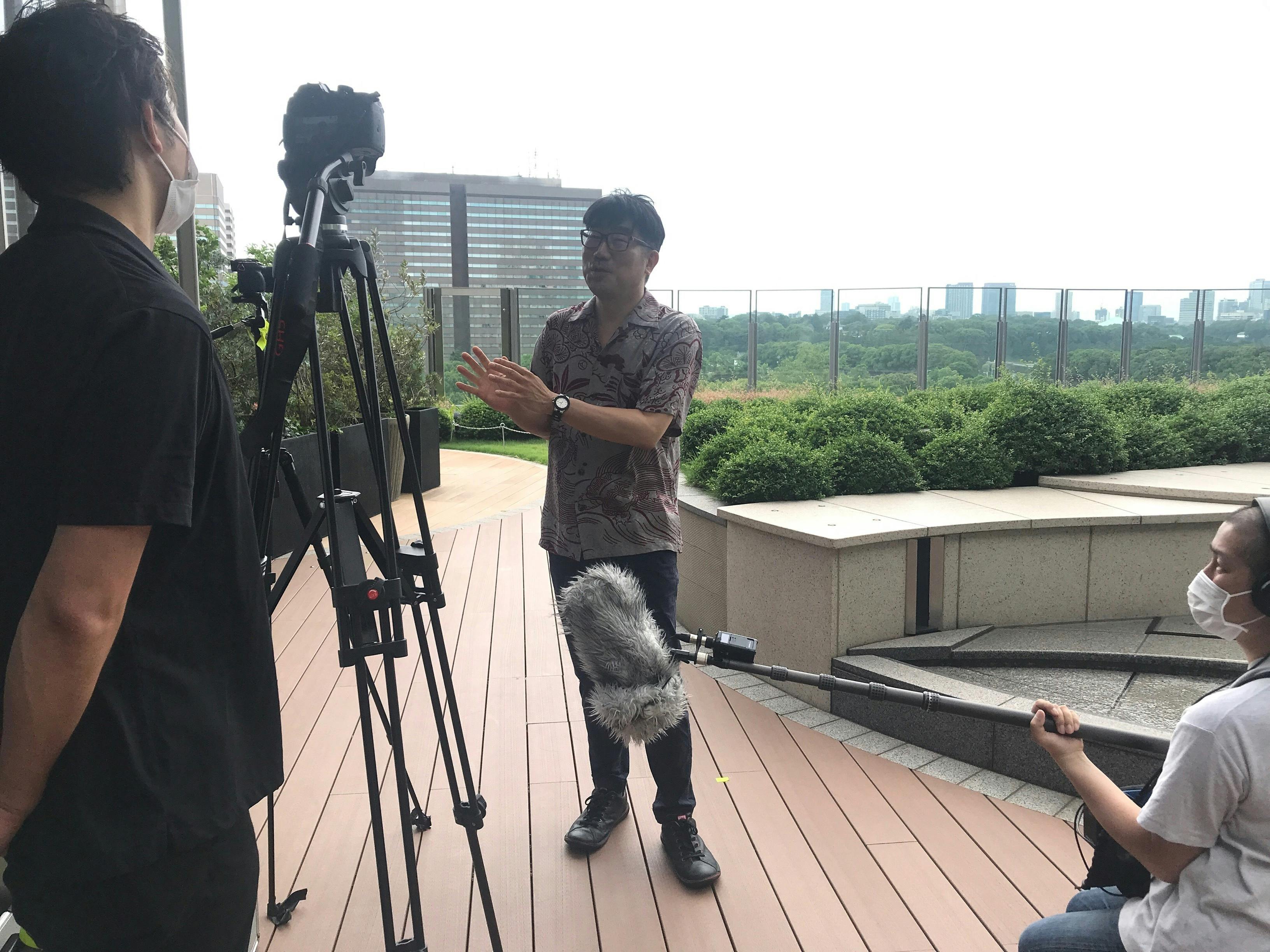 本日、雨の合間をぬって、日比谷公園の横の日比谷ミッドタウン パークビューガーデンにて、現在制作中のドキュメンタリーのインタビューを撮影しました。
