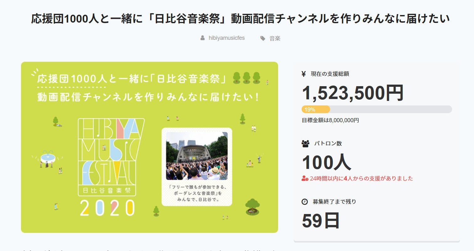【応援団100人突破】に背中を押されて!日比谷音楽祭 公式YouTubeチャンネル(HYC)いよいよ始動です!!まず、1本目の動画を公開いたします!そして、なんと、たなしん(グッドモーニングアメリカ)がHYCプロデューサーに就任決定!!さらに、YouTubeを使った新企画「#日比谷音楽祭2020歌ってみた」アワードの開催も決定!みなさんの渾身の歌ってみた動画を本日(2/3)より募集します(~4/5まで)。審査員は、日比谷音楽祭YouTubeアンバサダーのゆゆうたさん、みのさん、むらたたむさん、そして、たなしんP、亀田実行委員長 and.......<クラファン支援者の皆様※>です。入賞者は日比谷音楽祭のステージに立てちゃいます!(なんと、バック演奏にはよよかさん も参戦決定!!)詳細はオフィシャルサイト&公式YouTubeチャンネルにて●オフィシャルサイト:https://hibiyamusicfes.jp/●日比谷音楽祭 公式YouTubeチャンネル(HYC): https://www.youtube.com/channel/UCFAlNnhVbJWn4ndRNBgjnYg↑チャンネル登録、よろしくおねがいします!