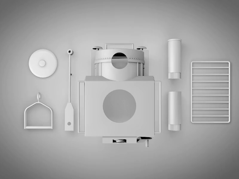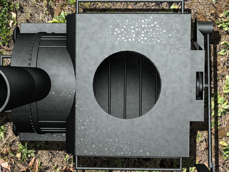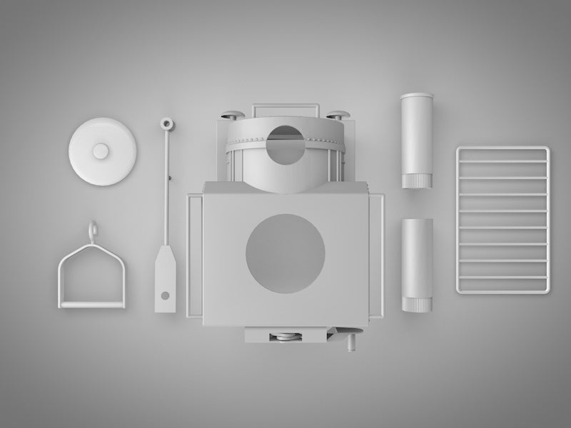 上の図のように煙突、胴体、蓋、ロストル、扉開閉ギミックアッシーに分解が可能。