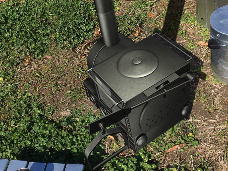 組み立ても簡単。ストーブ本体に、煙突と、扉開閉アッシーを取り付ければ完成です。