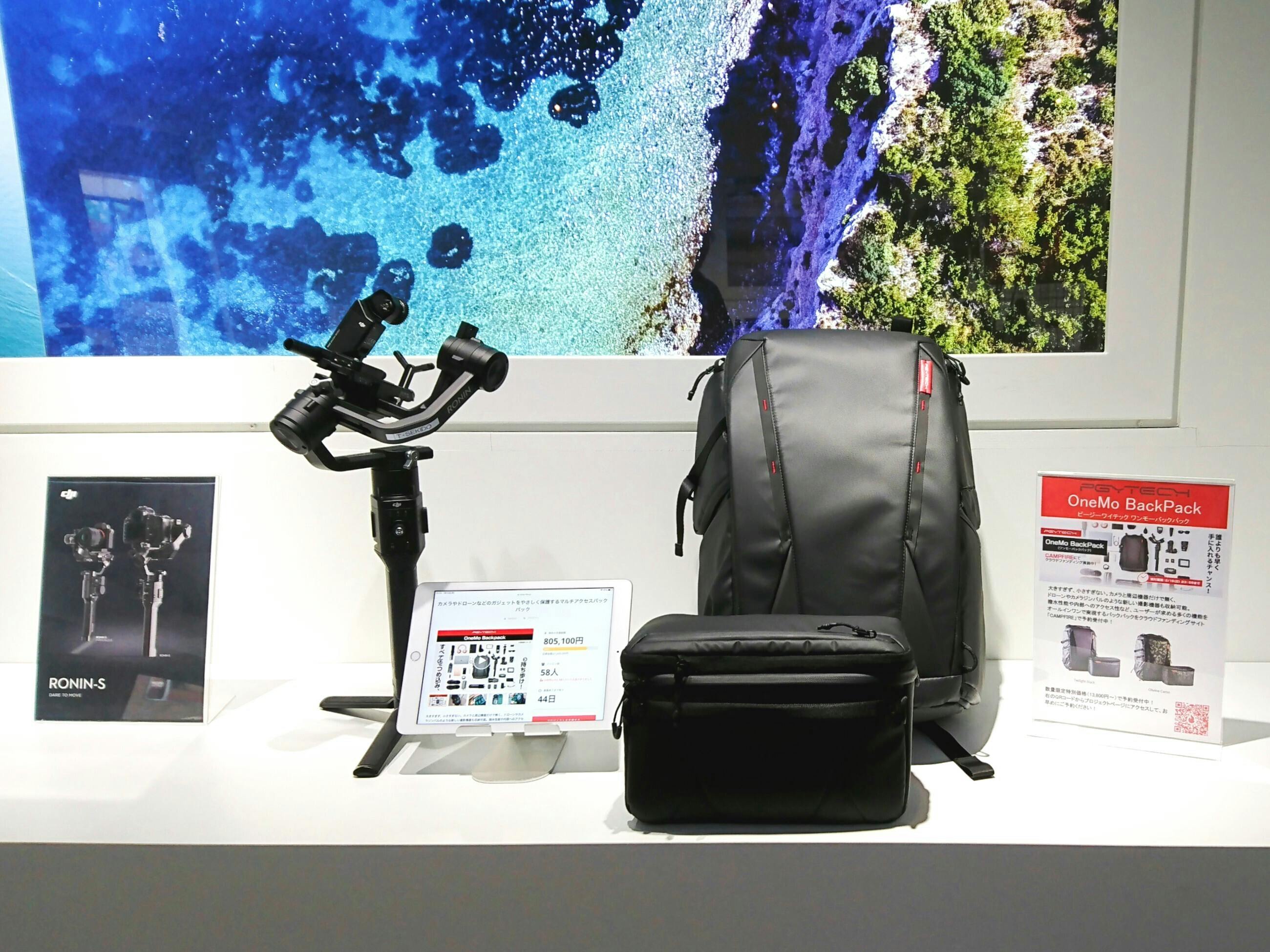店頭には各種DJI製品や収納状態の確認に欠かせない一眼レフカメラやPC、タブレットなどの周辺機器も用意しており、細かな使い勝手も確認して頂けます。