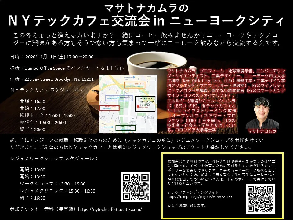 【アップデート】開催する場所決定しました。 お待たせして申し訳ないです。m(__)m 実はかなり会場の最終決定が難航していました。場所の選定と予算の関係上、また搬入搬出撤去の便利さを考慮して僕の勤務校のエリアであるブルックリンのダンボ地区にしました。ダンボエリアのアクセスはマンハッタンから一駅目と非常に便利で、ほとんど全ての地下鉄ラインがあります。