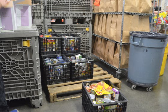 右側に並んでいる大きな紙袋は、開ければすぐ食べられる食糧の詰め合わせです。