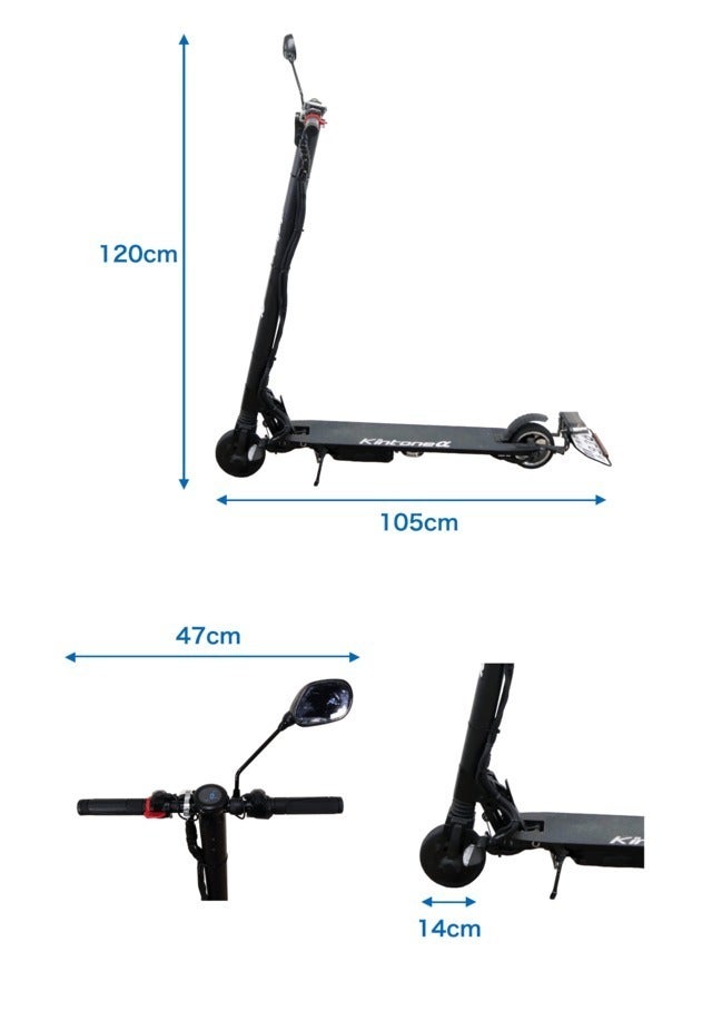 Kintone α GOは、電動モビリティの日本メーカーKintoneが開発した、公道走行が可能な電動キックボードです。