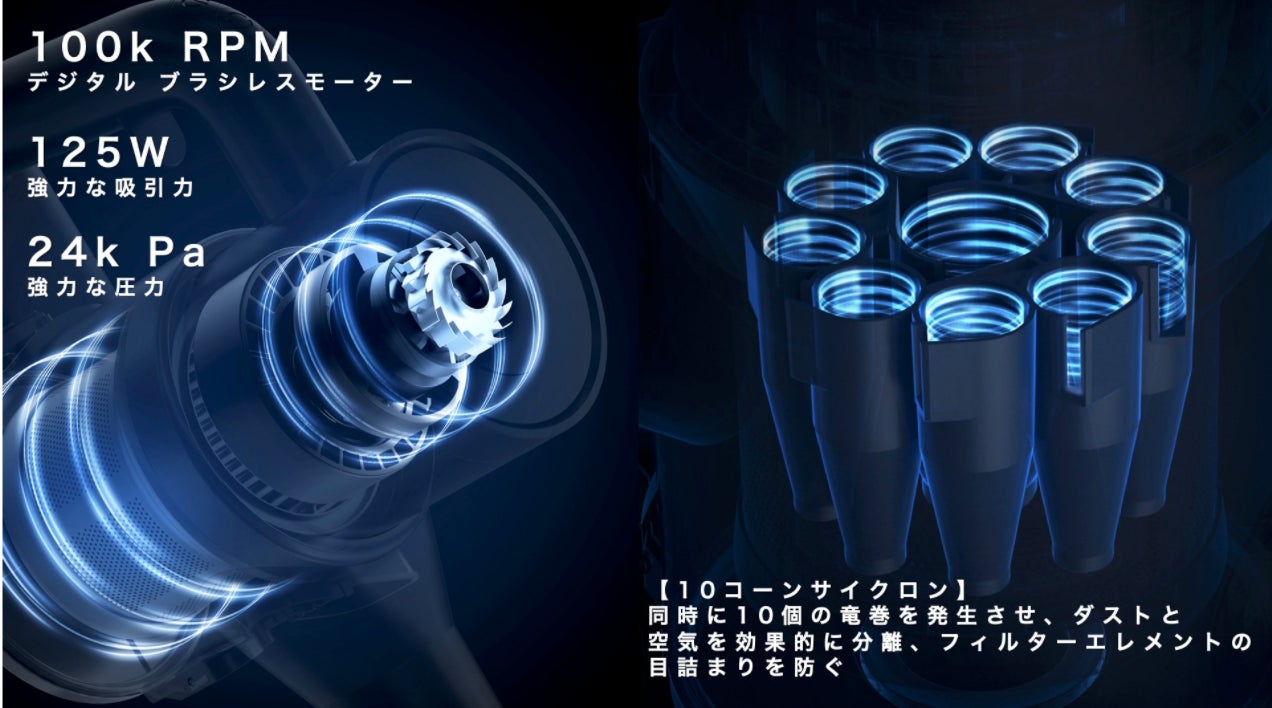 吸引力を高く維持できる秘訣は100kRPM 125W高性能モーター