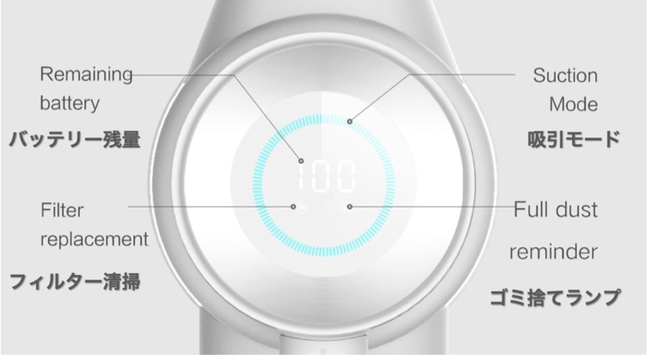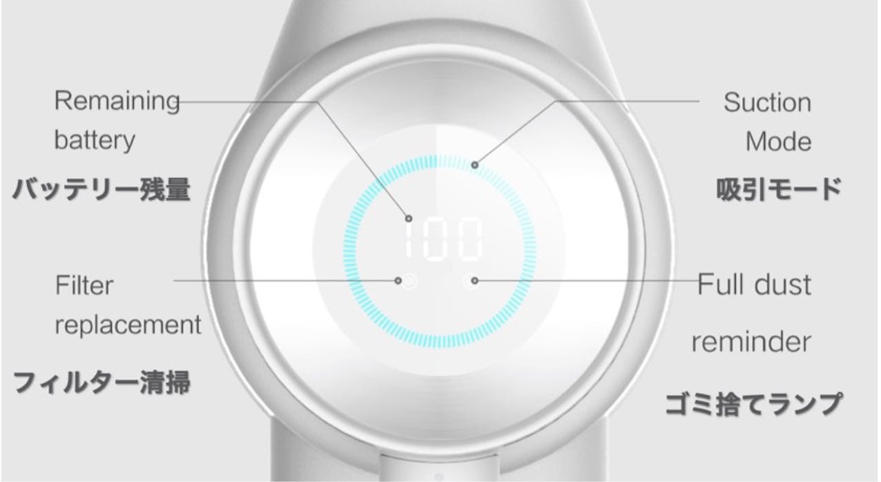 XCLEAはリビングやオフィスに馴染むシンプルな佇まいで、インテリアをじゃましません。特に、使用時に点滅するオシャレなディスプレイは高級感のある見た目で使用中の吸引レベルやバッテリー残量等を大きく表示してくれます。