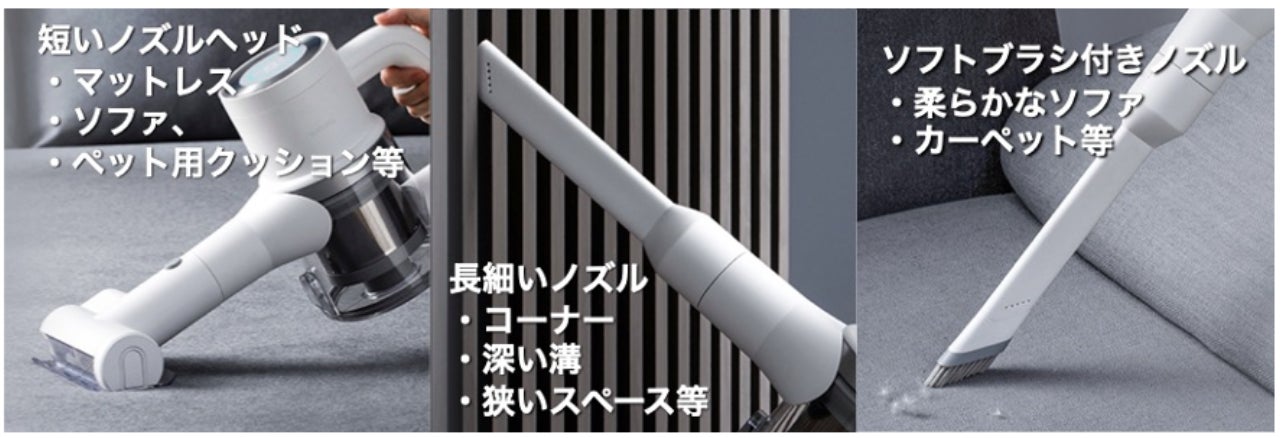 付け替え式のノズルはソファや机の隙間はもちろん、車の掃除まで。インテリアの隙間やロッカーの上など普段お掃除が行き届きにくい所もお任せください!