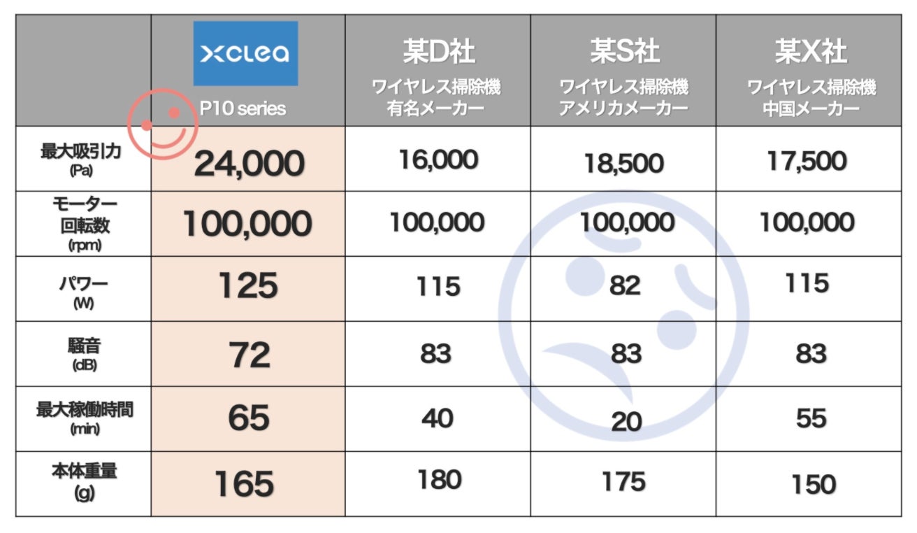 今回リリースする「XCLEA P10」は「強力な吸引力」「バッテリーの持続力」「静寂性」「3重滅菌システム」「操作性抜群のスクリーン」「ハイスペックモーター」