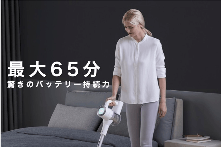 「バッテリーの持ちが長いと吸引力が弱い」と言われますが、クレアは吸引力を落とさずに65分のバッテリーの持続性を可能にしました。途中でパワーが無くなるストレスがないので、お部屋掃除を一気に終わらせることができます。