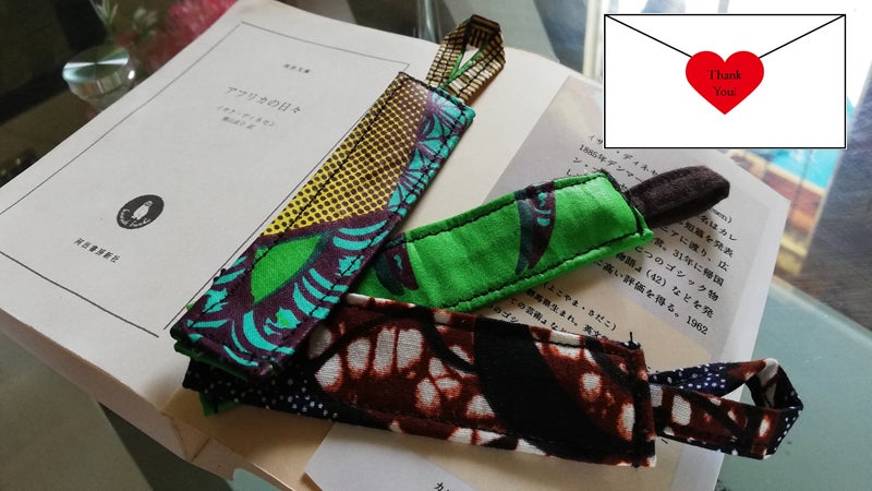 ・ムファンガノ島の仕立て屋さんに頼んで作ってもらったアフリカ布のしおりです!