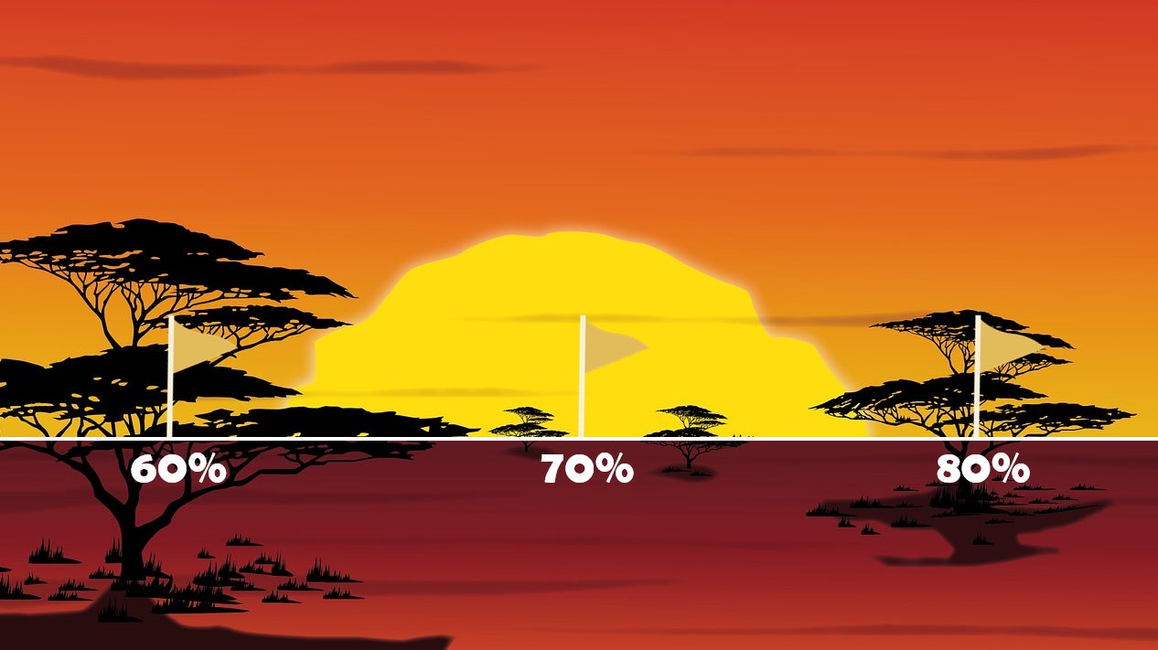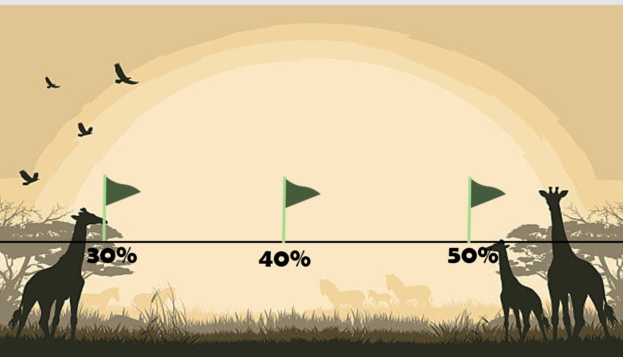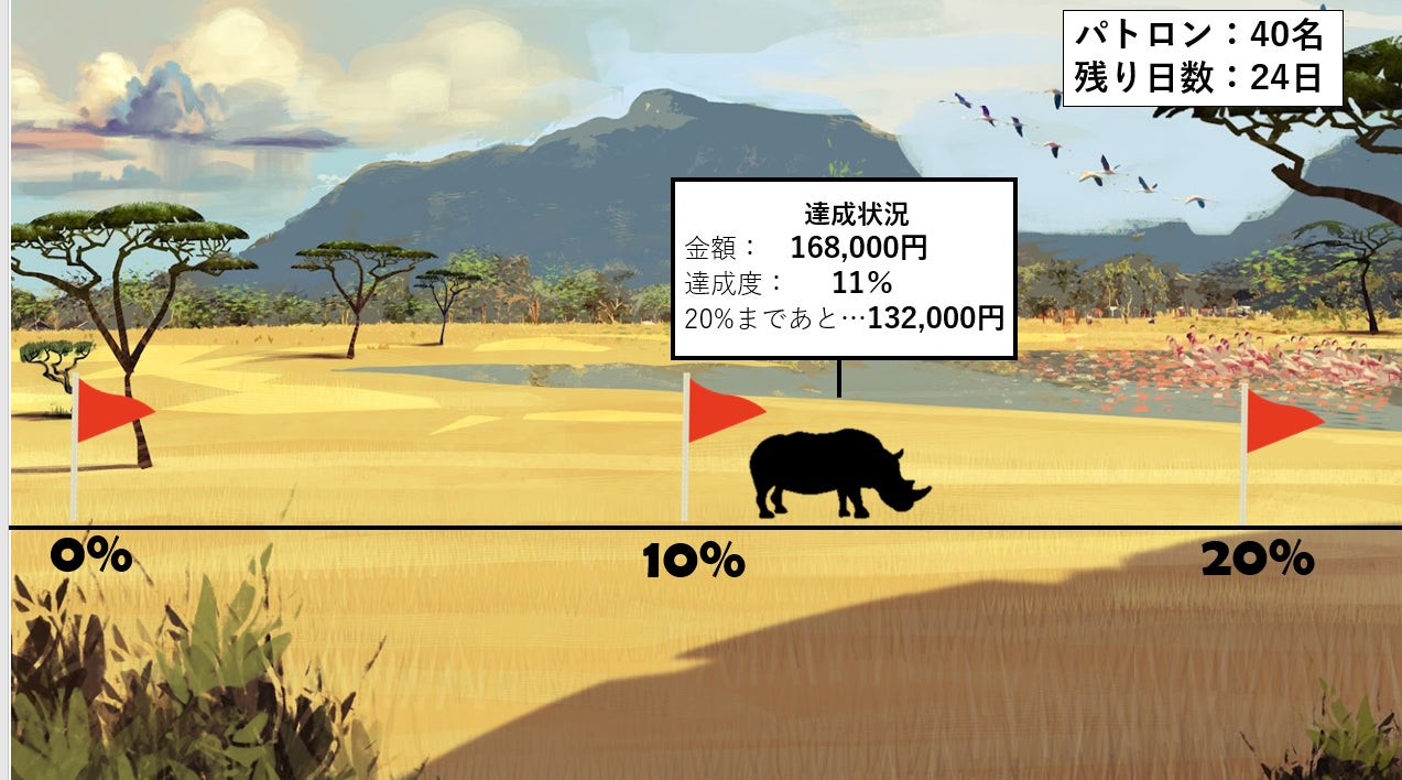ケニアをイメージして、サファリを達成度別に動物たちが駆け抜けていきます。第一弾の0~10%はライオンでしたが、10~20%は何の動物でしょうか…??