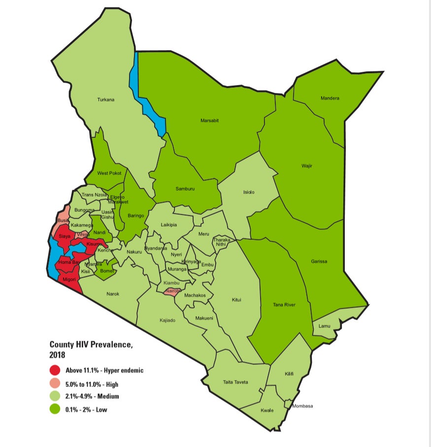 他にも感染率が高いのは、Siaya, Kisumu, Migori, Busia...と、湖の周辺地域が肩を連ねます。唯一首都のナイロビがここに入ってきていますが、沿岸地域とはまた違った要因が絡まり合ってHIV感染率が高くなっていることが考えられます。