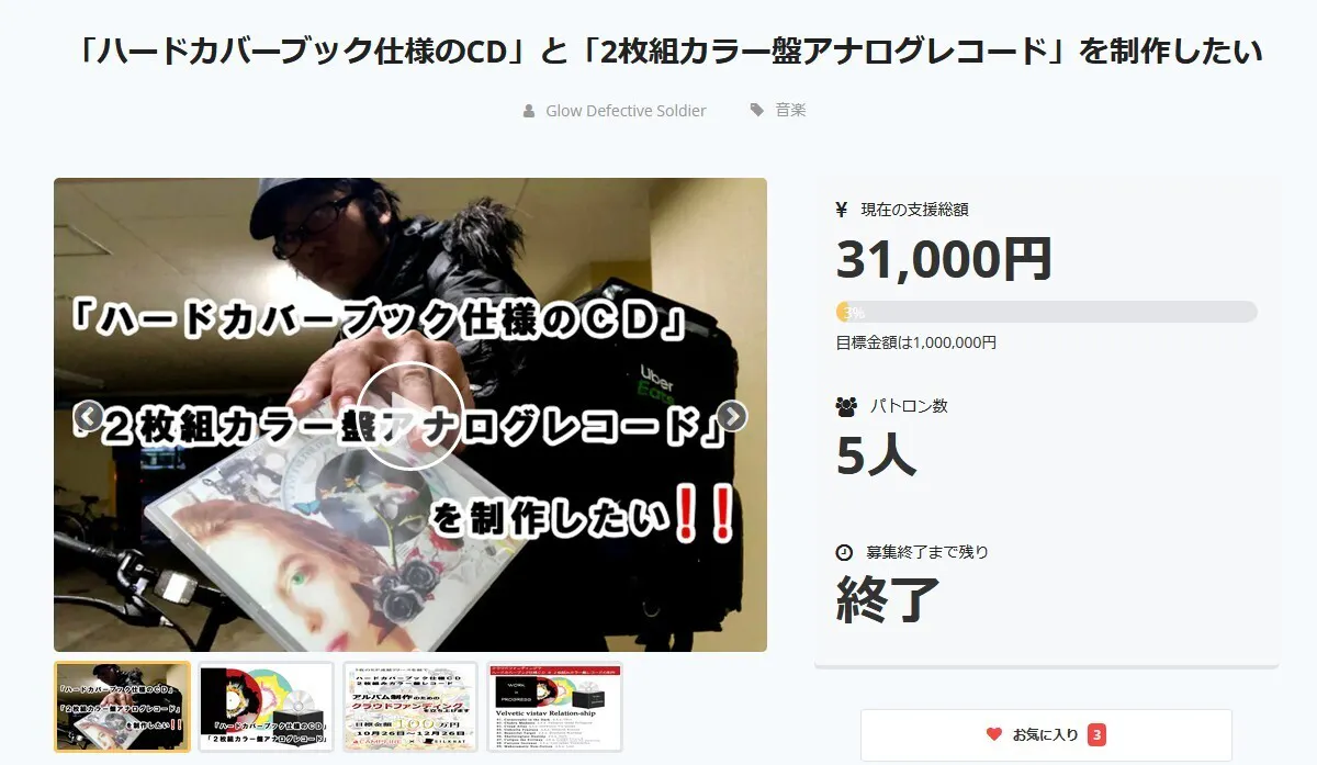 昨年10月末から12月末までの2ヶ月間、『「ハードカバーブック仕様のCD」と「2枚組カラー盤アナログレコード」を制作したい』と題してクラウドファンディングを開催しました。