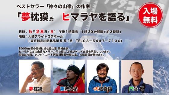「夢枕獏氏 ヒマラヤを語る」~ナンダ・コート初登頂80周年記念プロジェクト~