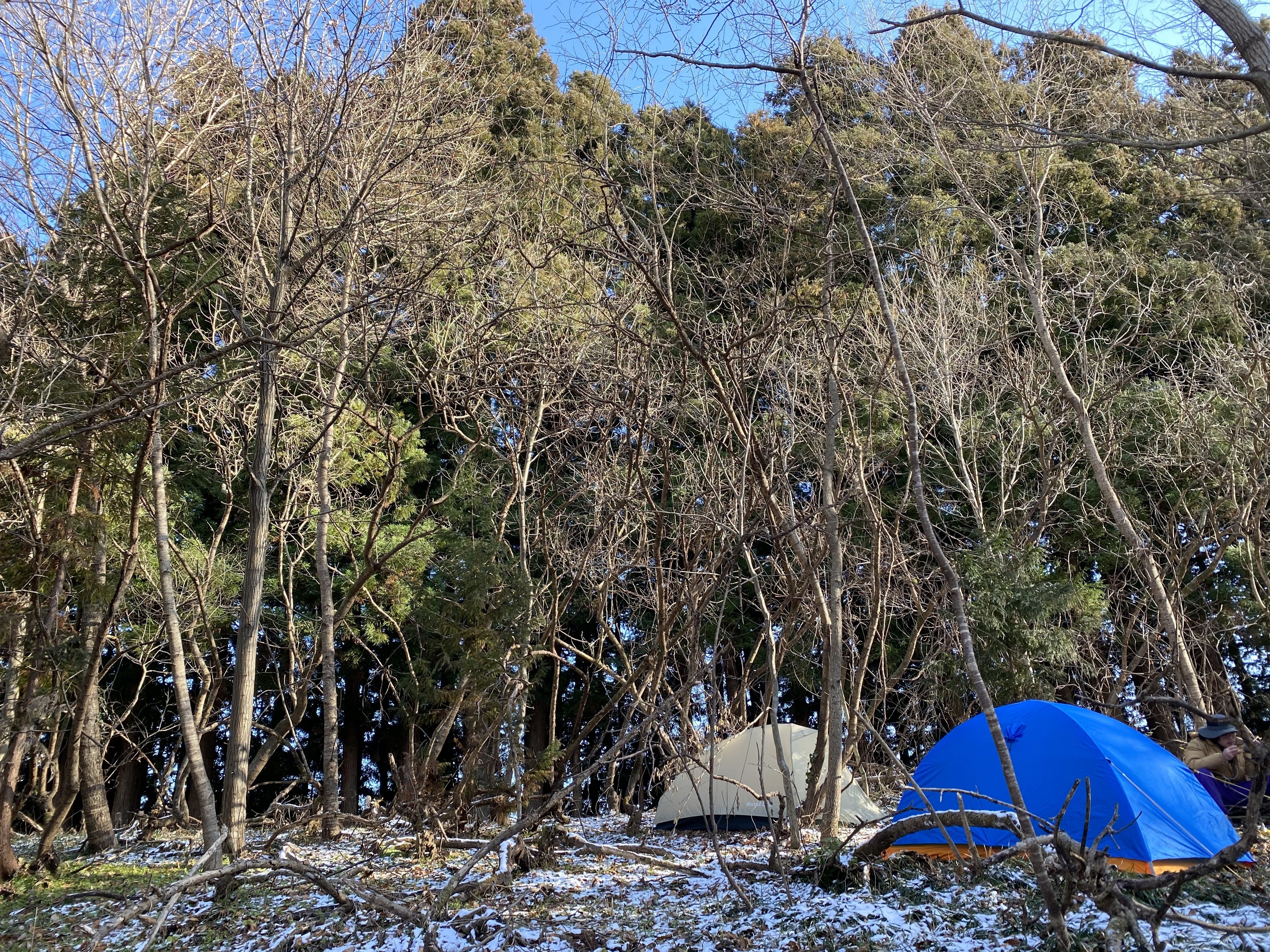 (この3枚はBushcraft&Hammock Areaの写真になります。作業がてらスタッフでテストキャンプをした際のものです。Fine View Areaと違い、シンボルツリーの山桜を始めとした立木が多く残っており、ブッシュクラフトに必要な「雰囲気」をもっている場所です。少々傾斜があるので中上級者向けと行ったところでしょうか)