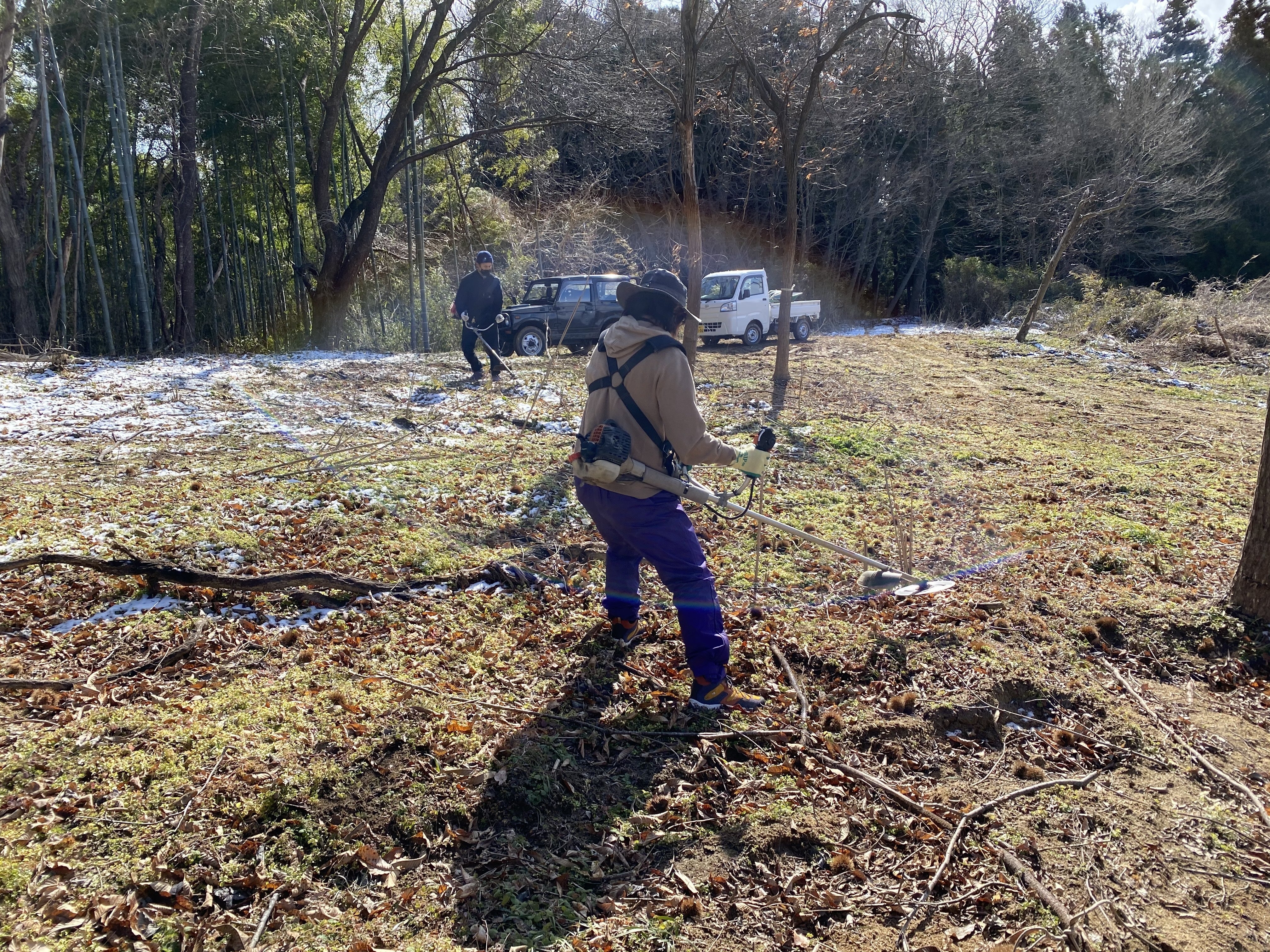 (上はFine View Areaからの眺めです。ここは開放感があり、比較的傾斜がない場所になっています。下は作業風景です。草刈機で篠笹を根本から伐っています)
