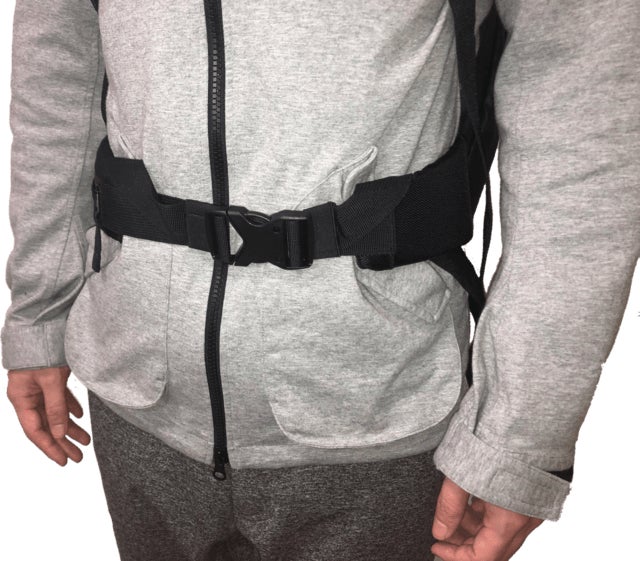 緩衝材を含んだ幅のあるリュックベルト、フィット感を向上させる胸・腰ストラップ、背面メッシュパッドの緩衝力のバランスにより、背負ったときに重さを感じにくい重量軽減効果を実現。