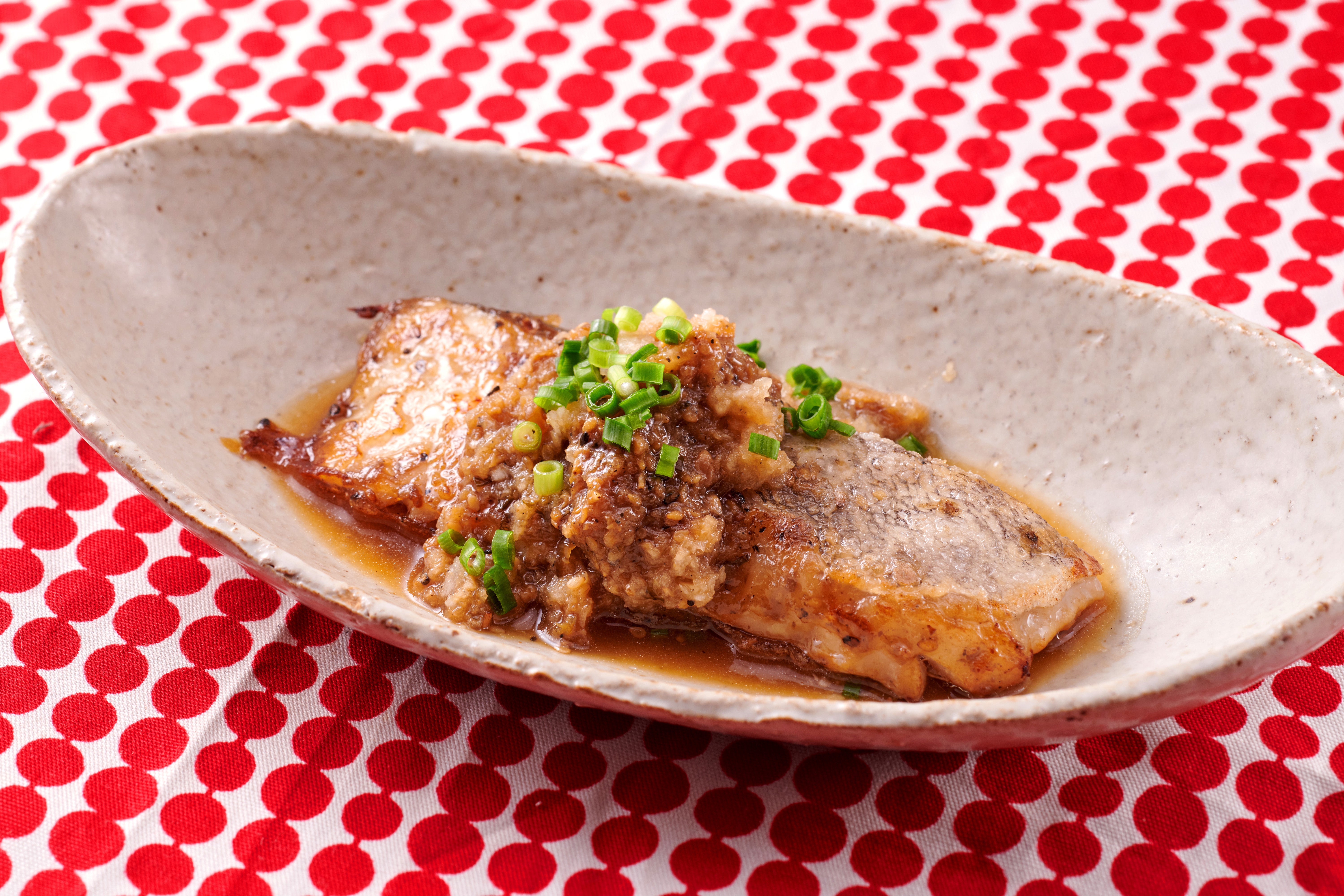 白身の切り身を漬け焼いたおろし和え。10分もあれば完成します。