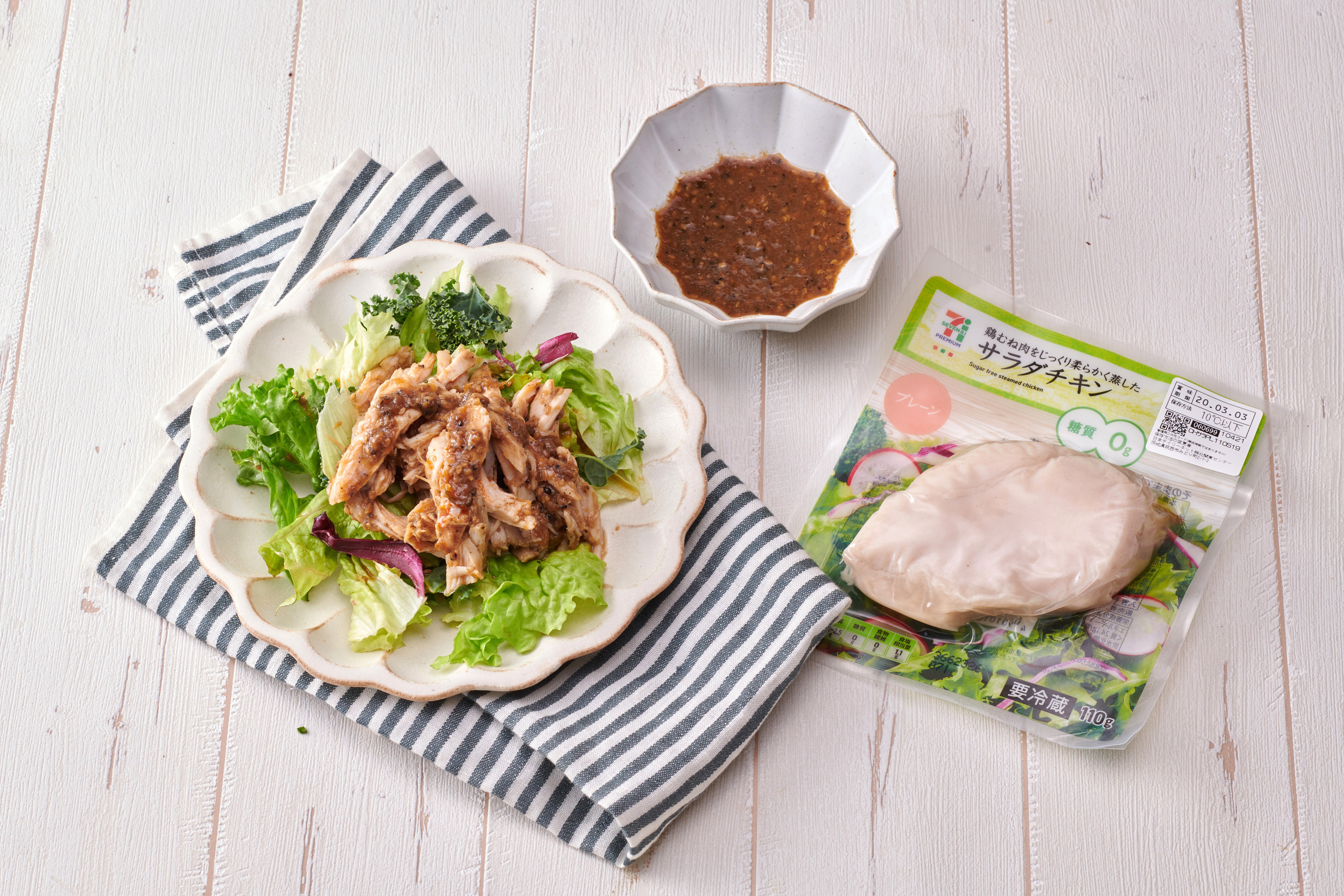 忙しすぎて帰ってすぐ食べれるコンビニのサラダチキンを買ってしまう時だってありますよね。そんな時には一振りかけるだけで栄養満点なおかずに早変わり