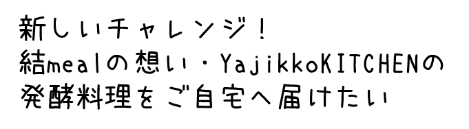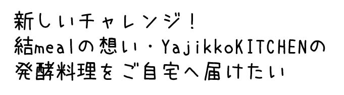 そんな”食”で悩む全ての人。北海道から沖縄まで私達に逢った事がない人、結meal・YajikkoKITCHENの事を知らない人にも、「こころ」と「からだ」が笑顔になる料理を食べてほしい。ストレスなく料理を作れるようになってほしい。キッチンに笑顔があふれてほしい。