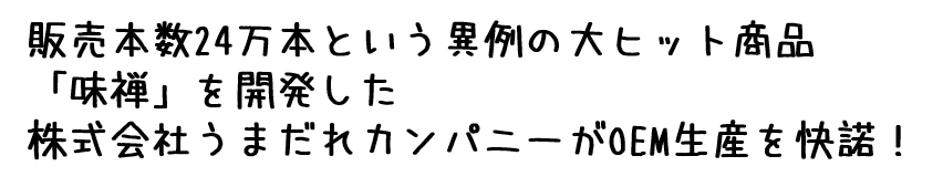 2008年に創業以来、累計24万本という脅威の販売本数を達成した「味禅」を生み出した、株式会社うまだれカンパニー 大久保貴之氏でした。。