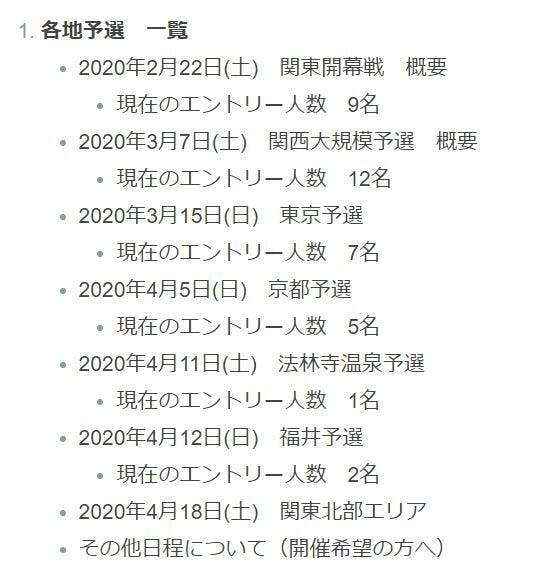 各地予選のエントリー状況を更新しました。