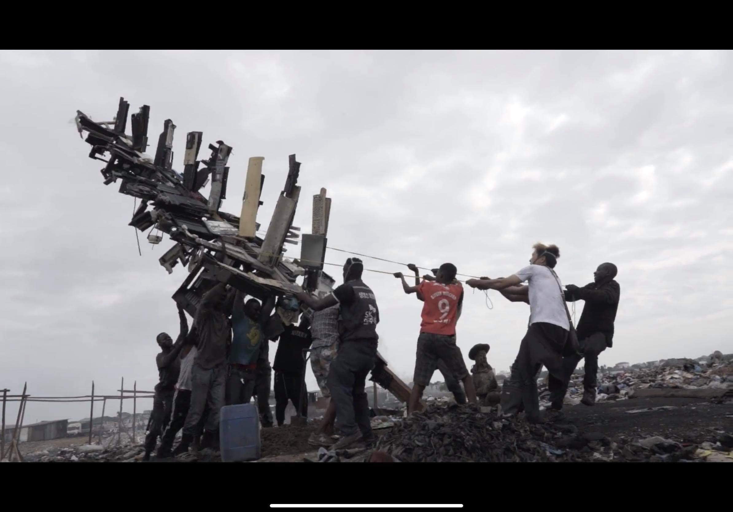 「E-WASTE TREE」 電子は器物で作れらた焼き場にそびえ立つ7mの作品